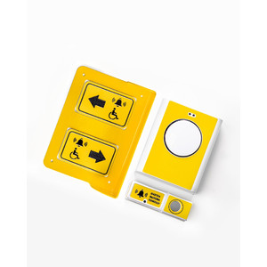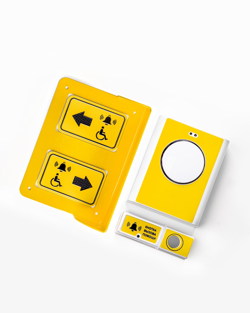Кнопка вызова помощи разработана для людей с ограниченными возможностями. Она включает в себя приемное устройство, кнопку вызова помощи, тактильные таблички и металлический козырек. Основная цель этой системы заключается в обеспечении уверенности и безопасности для маломобильных граждан, предоставляя им возможность вызвать помощь при необходимости.