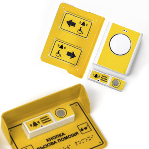 Для обеспечения доступности незрячих и слабовидящих пользователей на табличке имеется надпись шрифтом Брайля, а также предусмотрены тактильные указатели.